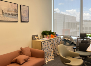 除此之外,昆山杜克大学蓝色绿洲学生活动中心也坐落在这片商业街区中,给学生创造了一片更具创造力的学习和休闲空间。蓝色绿洲是一个由读书交流室、圆形剧场、休闲区、游戏室、会议室、艺术手工创作室、音乐屋和社团活动区组成的学生专属区域。所有在校学生均可凭ID卡刷卡进入蓝色绿洲,在这里找到属于自己的一个角落。